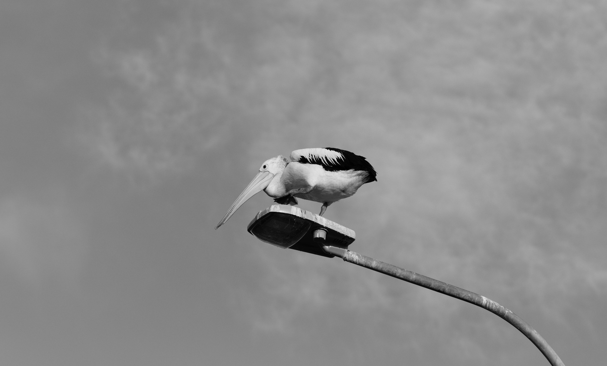 Whilst up north in Hawks Nest, I was fortunate enough to see pelicans on street lights. Took a photo of one or two of them, and this was the best photo of the lot. I haven’t seen pelicans roost on lights before, so it was peculiar to me, and this one standing there, preparing to roost, was one of the easier ones to capture, so I did.